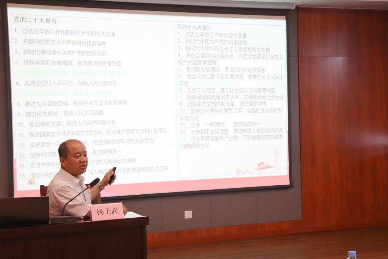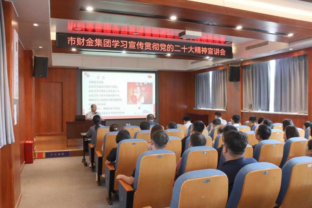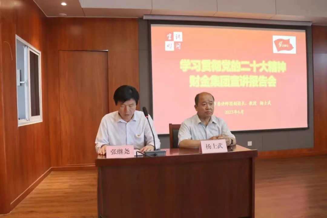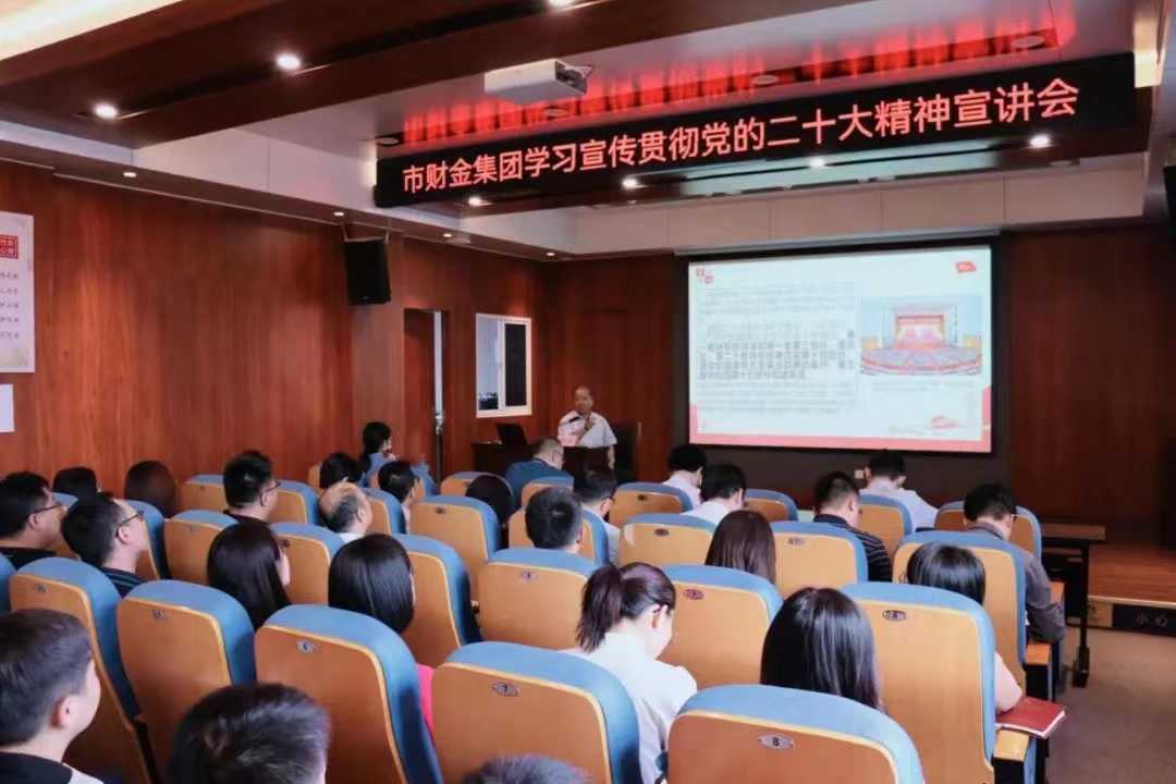 學習宣傳貫徹黨的二十大精神是當前和今后一個時期的首要政治任務,為深入學習宣傳貫徹黨的二十大精神,進一步凝聚共識,筑牢思想根基,財金集團特邀中共市委講師團副團長、教授楊士武同志做學習貫徹黨的二十大精神專題宣講。宣講會以原原本本學習研讀黨的二十大報告和黨章為綱領,帶領大家認真領悟黨的二十大提出的新思想新論斷、作出的新部署新要求。