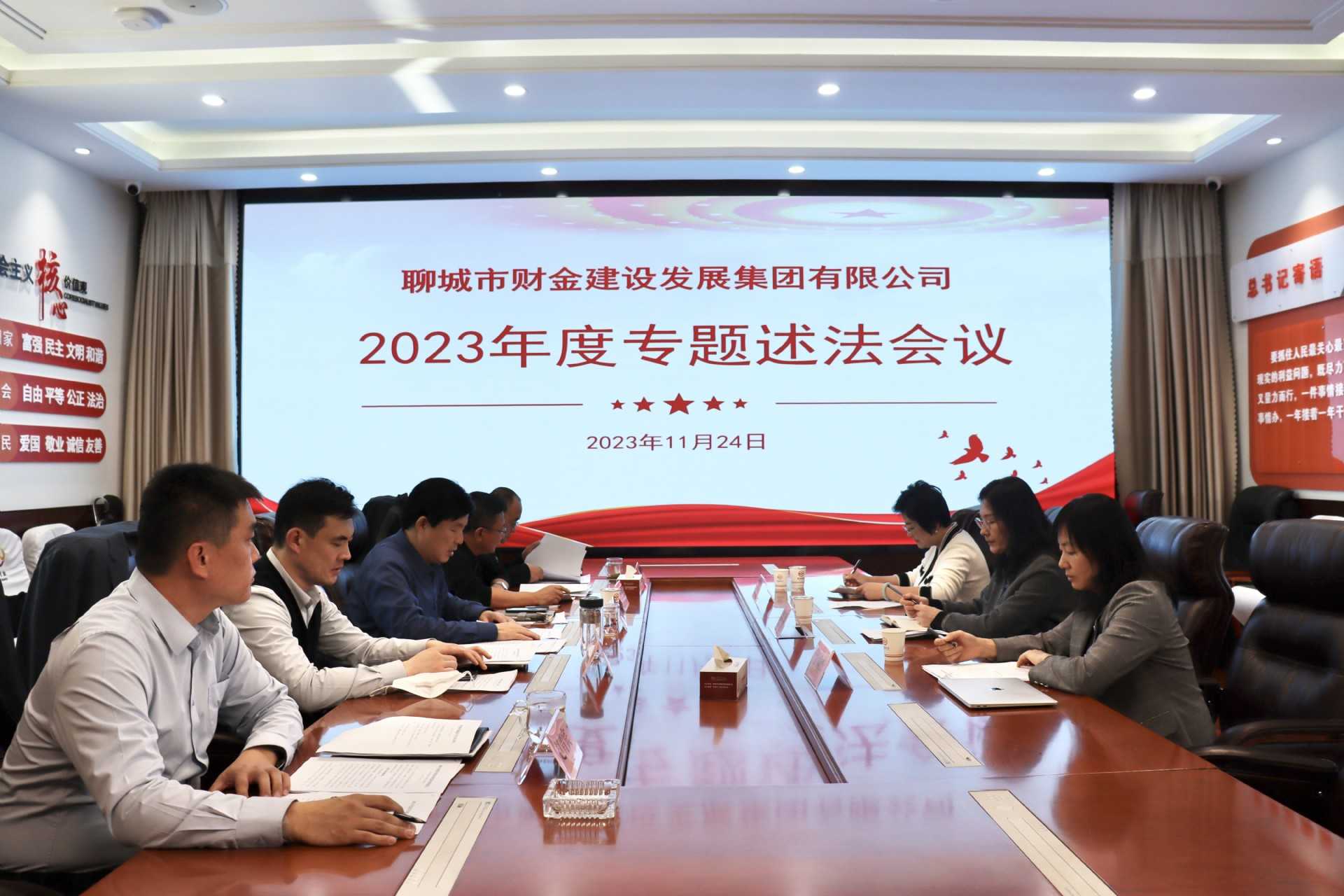 為貫徹落實(shí)黨中央關(guān)于全面依法治國(guó)的部署要求、落實(shí)推進(jìn)法治建設(shè)第一責(zé)任人職責(zé),充分發(fā)揮領(lǐng)導(dǎo)干部在法治建設(shè)中的示范引領(lǐng)作用,按照市委依法治市委員會(huì)要求,11月24日上午,財(cái)金集團(tuán)召開(kāi)2023年度領(lǐng)導(dǎo)班子專題述法會(huì)議,邀請(qǐng)市司法局四級(jí)調(diào)研員魏琳、市人大代表張樹(shù)杰、市政協(xié)委員薛國(guó)玉參加會(huì)議并對(duì)述法對(duì)象進(jìn)行評(píng)議,財(cái)金集團(tuán)黨委書(shū)記、董事長(zhǎng)張繼堯點(diǎn)評(píng)并作重要講話。
