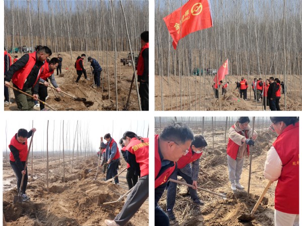 黃河沿岸春意盎然,一幅幅綠染黃河圖鋪展開來?;顒蝇F(xiàn)場,在集團(tuán)黨委班子成員的帶領(lǐng)下,志愿者們分工有序、配合默契,有的丈量樹距、瞄點(diǎn)對正;有的扶直樹苗、揮鍬培土;有的踩土夯實(shí),覆土打圍。