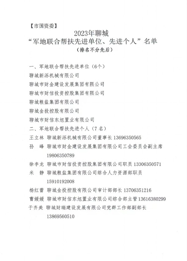 聊城市財(cái)金建設(shè)發(fā)展集團(tuán)有限公司被授予“軍地聯(lián)合幫扶先進(jìn)單位”榮譽(yù)稱號(hào),工會(huì)副主席孫峰同志被評(píng)為“軍地聯(lián)合幫扶先進(jìn)個(gè)人”。
