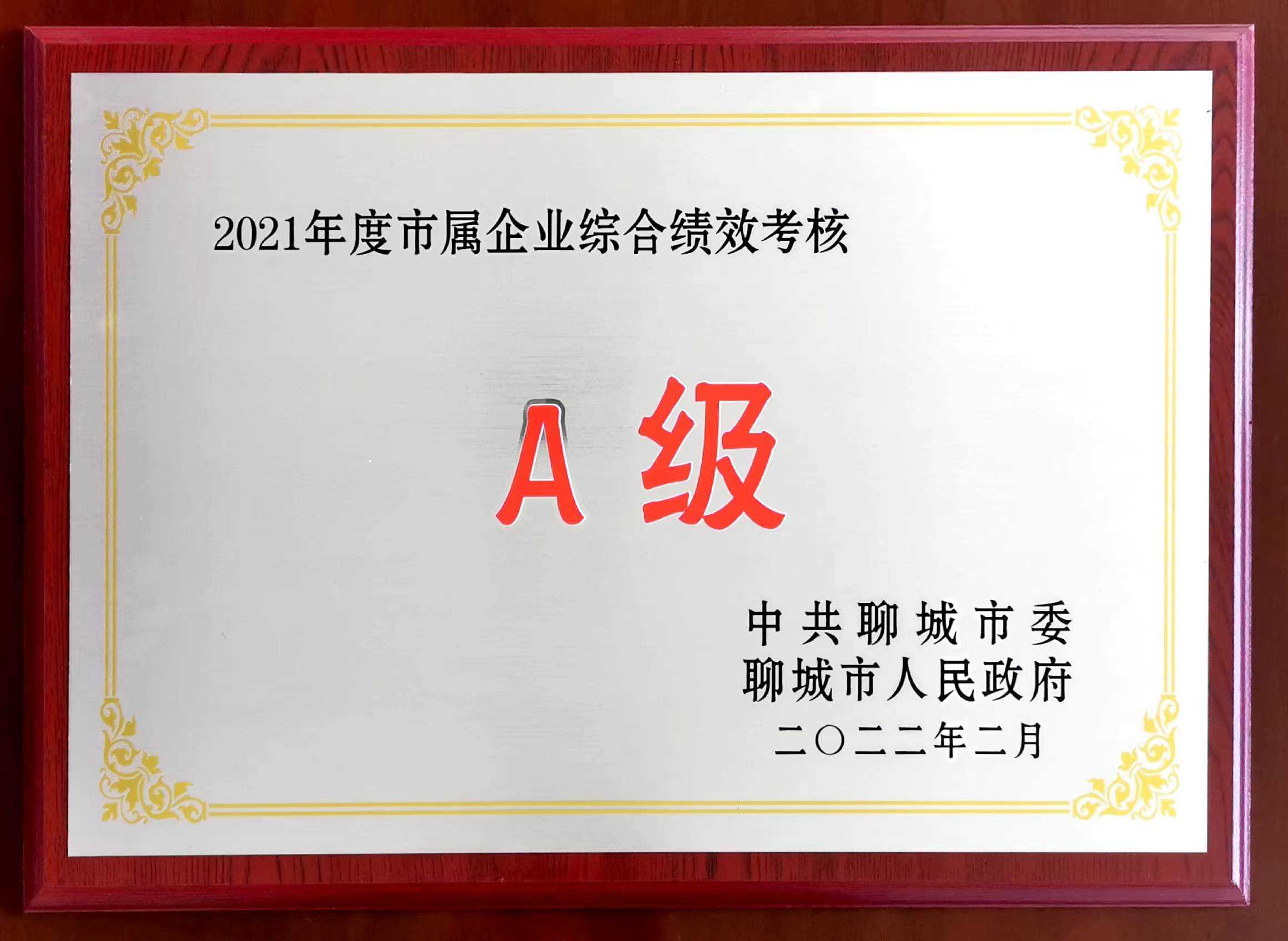 根據(jù)聊委〔2022〕95號(hào)《中共聊城市委 聊城市人民政府關(guān)于表?yè)P(yáng)2021年度縣市區(qū)高質(zhì)量發(fā)展綜合績(jī)效考核先進(jìn)單位和市直機(jī)關(guān)服務(wù)高質(zhì)量發(fā)展績(jī)效考核優(yōu)秀單位的決定》,為鼓勵(lì)先進(jìn)、凝聚力量,激發(fā)廣大干部干事創(chuàng)業(yè)的責(zé)任感和使命感,扎實(shí)做好2022年全市各項(xiàng)工作,市委、市政府決定,授予聊城市財(cái)金建設(shè)發(fā)展集團(tuán)有限公司“2021年度市屬企業(yè)綜合績(jī)效考核A級(jí)”。