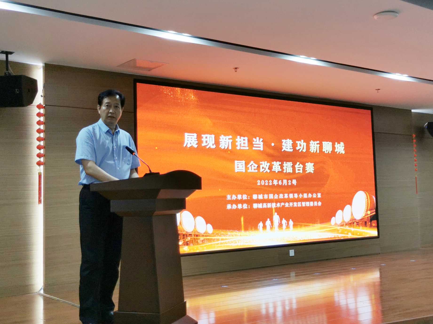 6月2日下午,聊城市國企改革領(lǐng)導小組辦公室開展了“改革攻堅擂臺賽”,市國資委黨委委員、副主任李樹新主持開場,高新區(qū)黨工委書記、管委會主任崔憲奎致辭,12家企業(yè)攜改革案例依次做PPT匯報展示,來自市委改革辦各相關(guān)成員單位部室、國有企業(yè)領(lǐng)導班子、企業(yè)專職外部董事、聊城大學、聊城日報等二十余名成員組成評委會進行現(xiàn)場評分。